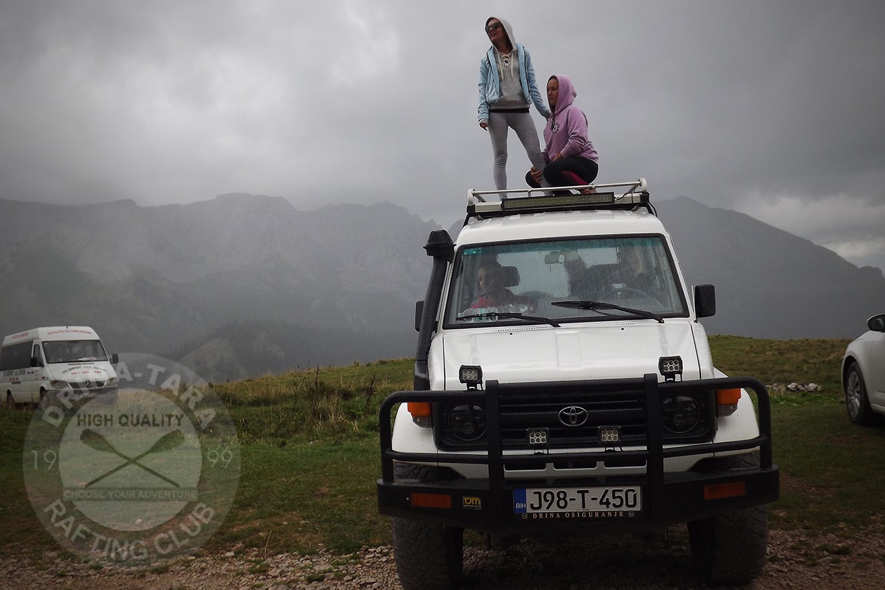Daljše 4x4 safari zajemajo lunch pakete ali kosilo v naravi, odvisno od želja gostov.Zahvaljujoč izjemnemu položaju med dvema nacionalnima parkoma - Durmitorjem in Sutjesko in zahvaljujoč neposredni bližini edinega pragozda v Evropi - Perućice, največjega gorja regije, številnim nedotaknjenim soteskam, ledeniškim jezerom, čudoviti, nedotaknjeni naravi itn., Rafting center Drina Tara nudi zelo popularne 4x4 Jeep Safari ture.